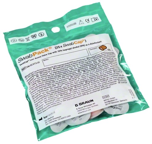 SwabCap® ist eine Desinfektionskappe mit 70%-igem Isopropylalkohol (IPA). Das Produkt ist für die Verwendung auf nadelfreien Luer-Zugangskonnektoren (Membranventilen) zur Desinfektion vor der Konnektion und zum Schutz vor Kontamination zwischen den Konnektionen vorgesehen.