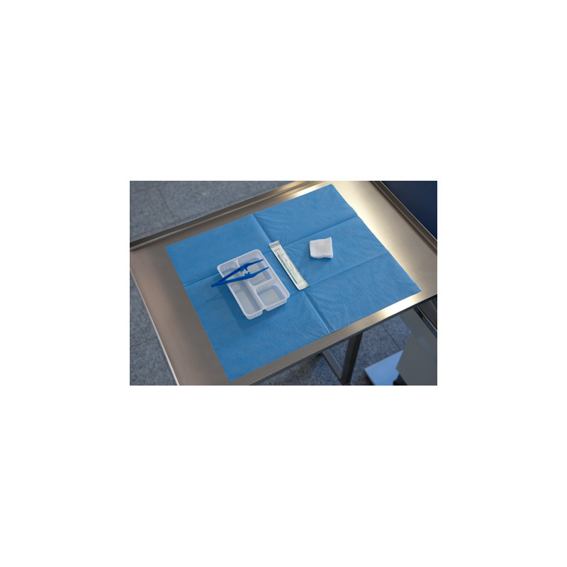 Das 2-lagige blau Abdecktuch ist einzeln steril verpackt. Es dient zur sterilen Abgrenzung des Operationsfeldes. Die Außenlage besteht aus einem extrem saugfähigen, naßfestem Vliesstoff, der schnell Flüssigkeit aufnimmt. Die Innenseite besteht aus einem sehr dichtem, feuchtigkeitsundurchlässigem Material und bietet vollständigen Barriereschutz.