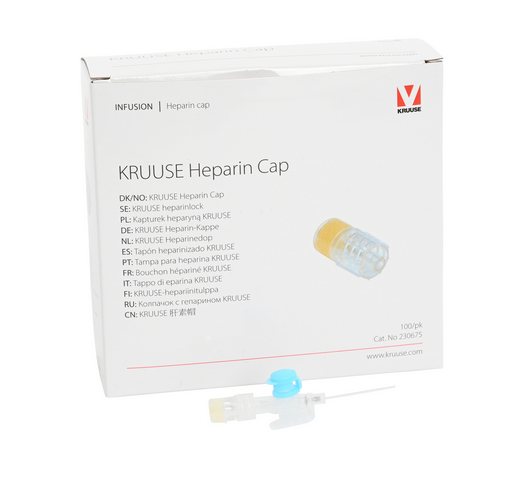 Die Kruuse Heparin Kappen werden am IV-Katheter befestigt statt der üblichen Kappe oder sem Stilett.