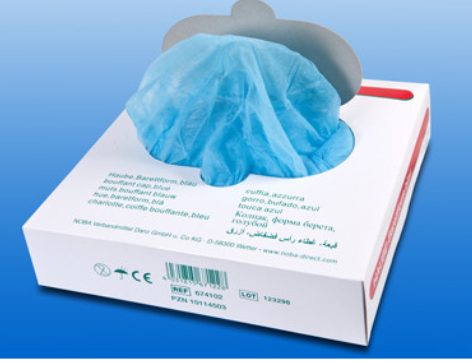 Produktbeschreibung und Zweck-bestimmung Die Haube besteht aus einem leichten, weißen Spinnvlies. Das luftdurchlässige und dadurch atmungsaktive Material ver-hindert einen Wärmestau und erhöht somit den Tragekomfort. Sie dient zur Abdeckung der Haare bei Personal, Patienten und Besuchern. Eine Kontamination durch Haare wird vermieden.