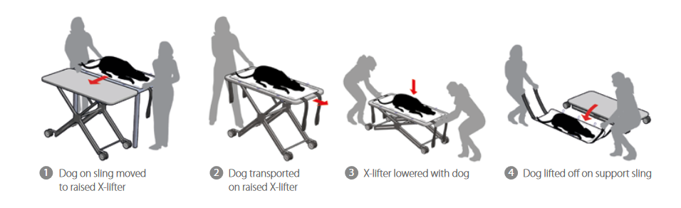 Der KRUUSE X-lifter ist ein spezieller Transporttisch für den reibungslosen und einfachen Transport von Patienten vom Parkplatz in die Tierklinik,
