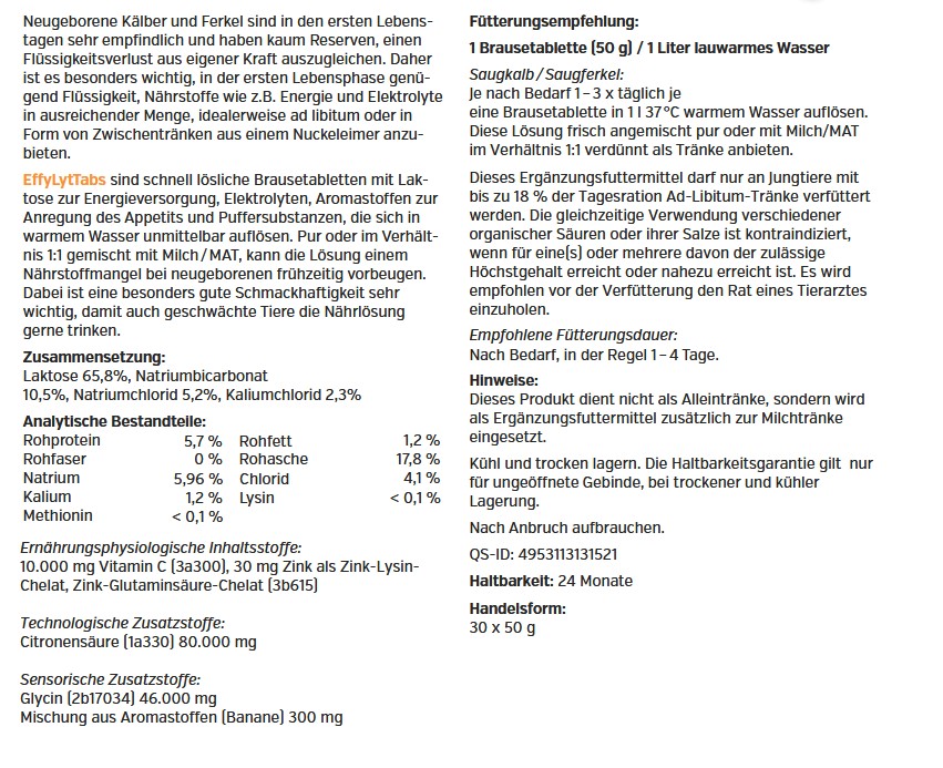 Produktinformationen "EffyLytTabs 30x50g, für Kälber +Ferkel"