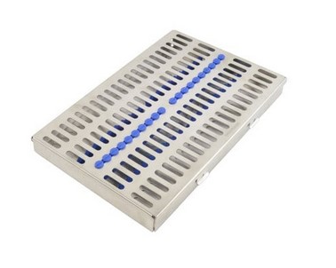 Die Instrumentenkassette aus rostfreiem Edelstahl eignet sich zur Aufbewahrung und Sterilisation von medizinischen und chirurgischen Instrumenten. Die Instrumente können übersichtlich auf die Silikon-Halterungen in der Kassette eingelegt werden und passend für spezielle Eingriffe z. B. als OP-Box vorbereitet werden.