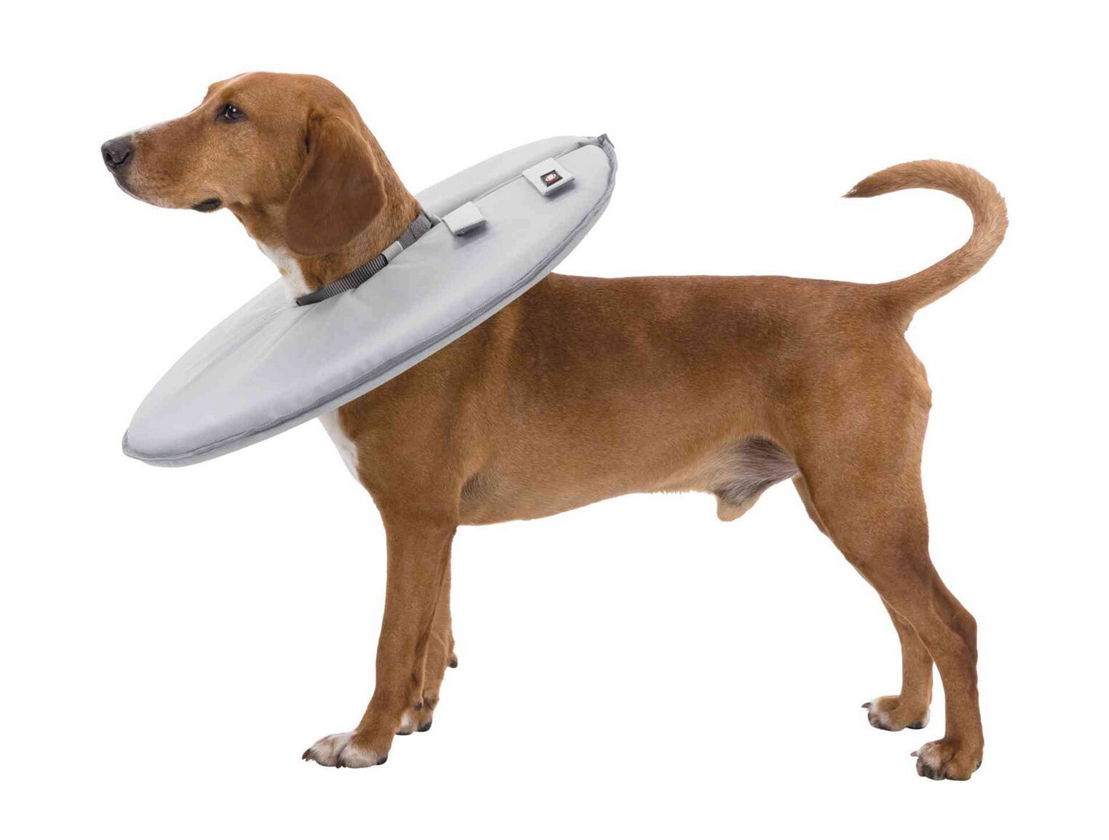 Unser Schutzkragen verhindert, dass die Tiere mit ihrer Schnauze an die Wunde gelangen. Das weiche Material sorgt für einen angenehmen Tragekomfort und ermöglicht es dem Tier, trotz Schutzkragen bequem zu liegen. Auch Trinken, Fressen und Schnüffeln sind weiterhin problemlos möglich - Sicht und Gehör werden ebenfalls kaum eingeschränkt. Lediglich beim Treppensteigen solltest du dein Haustier im Blick behalten, da der Radius des Schutzkragens die Sicht etwas einschränken kann. Die Halsbandlaschen an dem Schutzkragen lassen sich einfach öffnen und schließen.