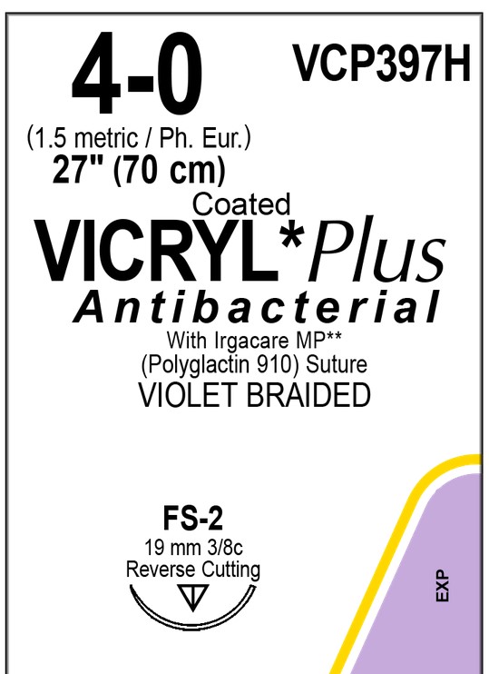 VICRYL Plus war das erste antibakteriell beschichtete Nahtmaterial.Es ist beschichtet mit IRGACARE MP, der reinsten Form des Antiseptikums Triclosan. Somit bietet VICRYL Plus wie alle Plus Materialien eine Hemmzone gegen gram-positive und gram-negative Erreger. Indikationsgebiete: Allgemeinchirurgie, Mikrochirurgie (Gefäßnähte < 2mm), Gastro-Intestinal-Chirurgie, Gynäkologie, Urologie, Orthopädie.Der VICRYL Plus Faden besitzt nach 21 Tagen noch 50% seiner Ausgangsreißkraft, nach 35 Tagen ist keine Reißkraft mehr vorhanden.
